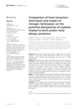 METHODS: We compared and optimized protein extraction protocols for birch-homologue foods, including apple, carrot, and soybean. Various extraction buffers and mixing methods were tested for consistency and protein yield. We applied this to a pilot study assessing potential changes in the allergenic potential of plant-based foods due to altered nitrogen availability. A greenhouse experiment was conducted in which soybean plants were subjected to different nitrogen fertilization treatments. Allergenicity was evaluated using basophil activation testing in five individuals with birch pollen-food allergy syndrome.