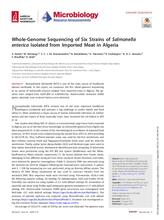 Nontyphoidal (NTS) is one of the main causes of foodborne disease worldwide. In this report, we announce the first whole-genome sequencing of six strains of isolated from imported meat in Algeria. The genome sizes ranged from 4,601,209 to 4,958,962 bp. Antimicrobial resistance (AMR) genes, plasmids, and virulence factors were detected.